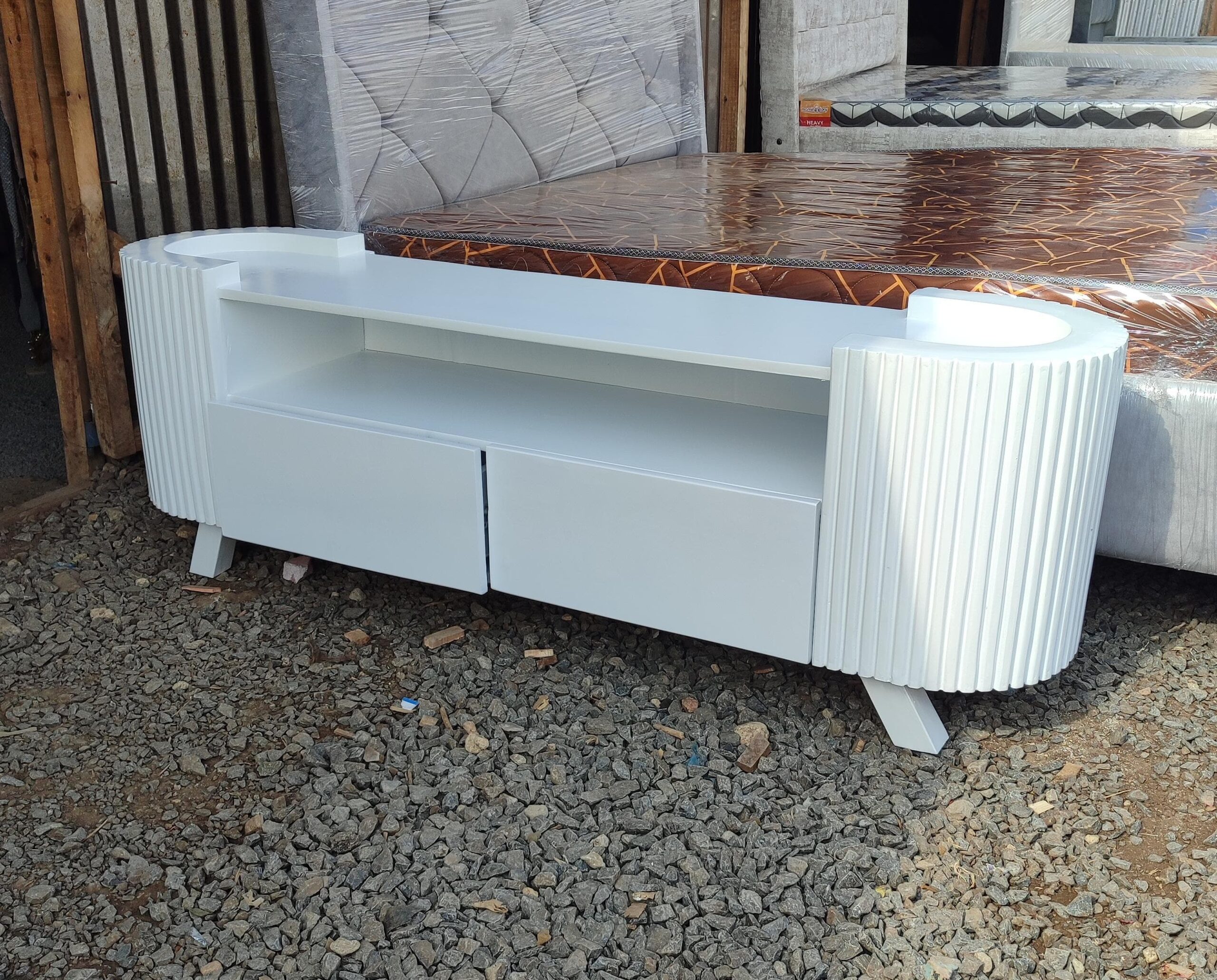 6ft Curved TV Stand – White