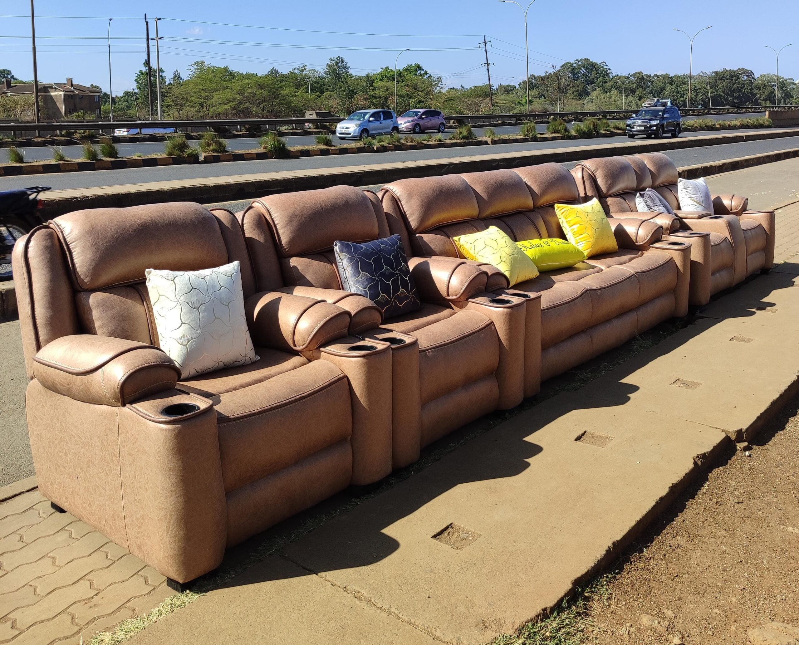 Brown Semi Recliner Sofa Microfibre fabric No cup holders 5 Seater – KSh 68,000 | 7 Seater – KSh 98,000