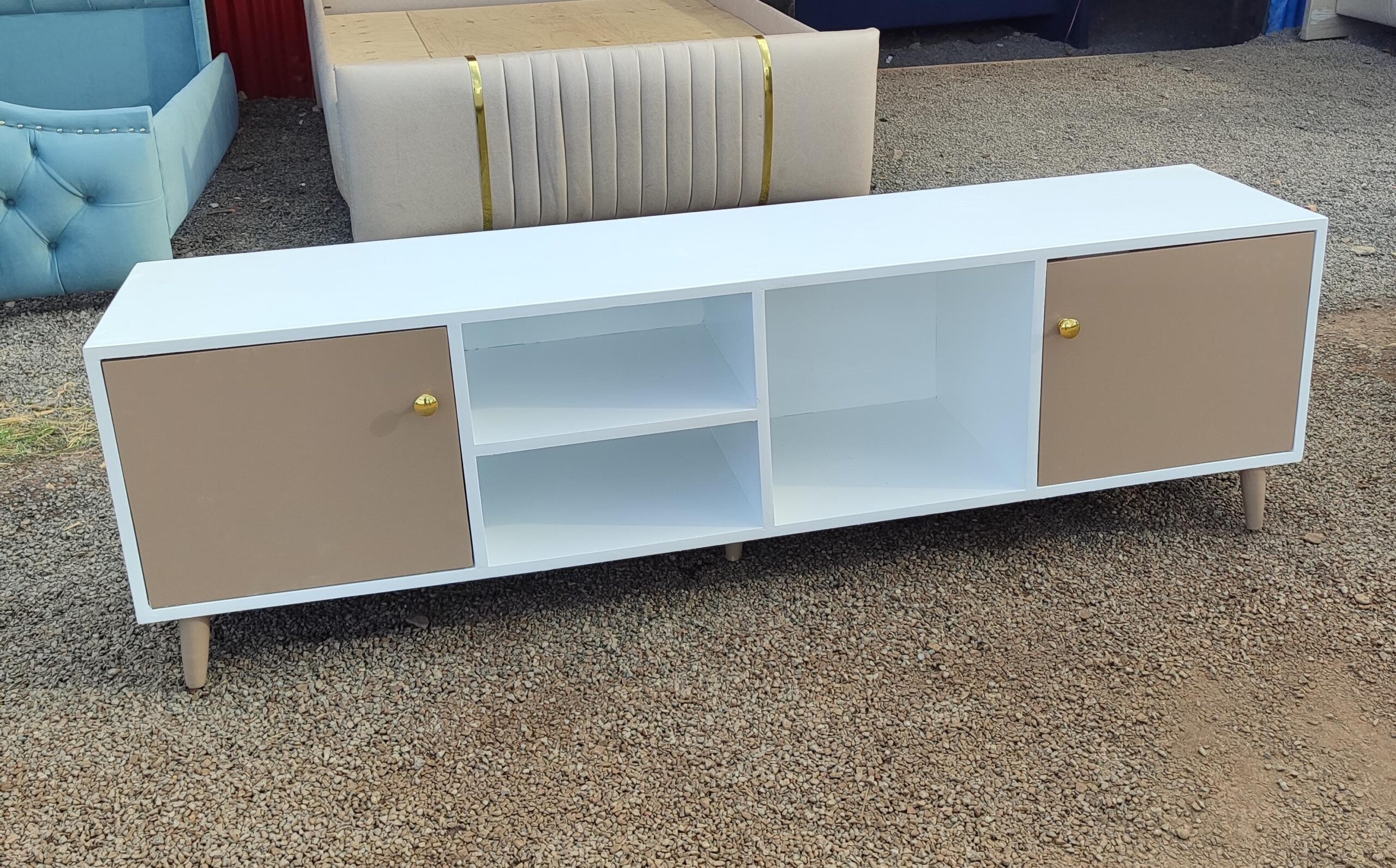 6ft TV Stand – White & Gold + Artificial Fireplace