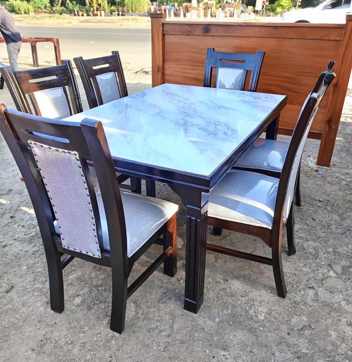 Hardwood Dining Table with Chestered seats. 4 Seater – KSh 45,000 | With Marble – KSh 55,000 6 Seater –