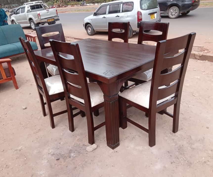 Hardwood Dining Table with Chestered seats. 4 Seater – KSh 45,000 | With Marble – KSh 55,000 6 Seater –