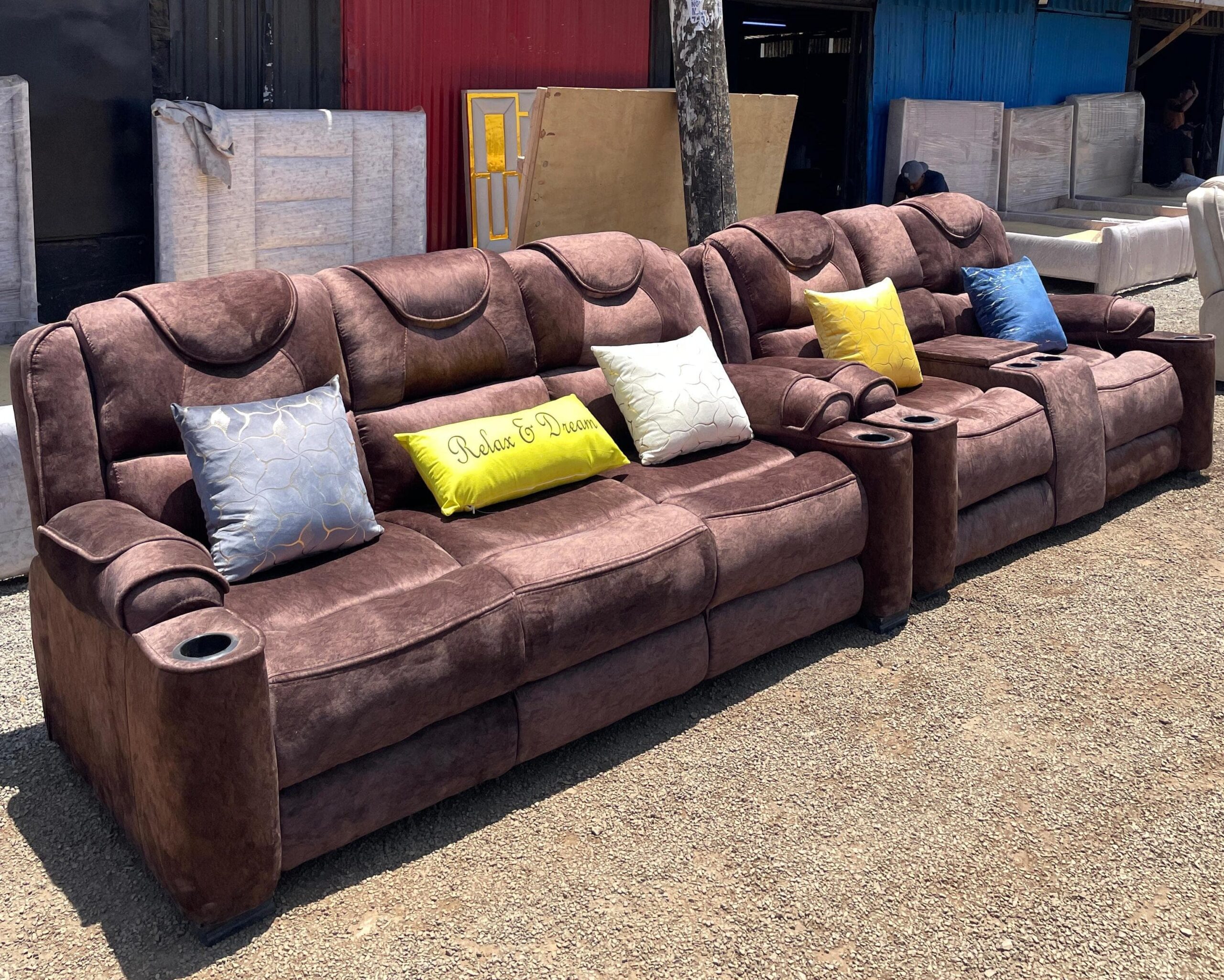 Dark Brown Semi Recliner Sofa Microfibre premium fabric No cup holders 5 Seater – KSh 68,000 | 7 Seater –