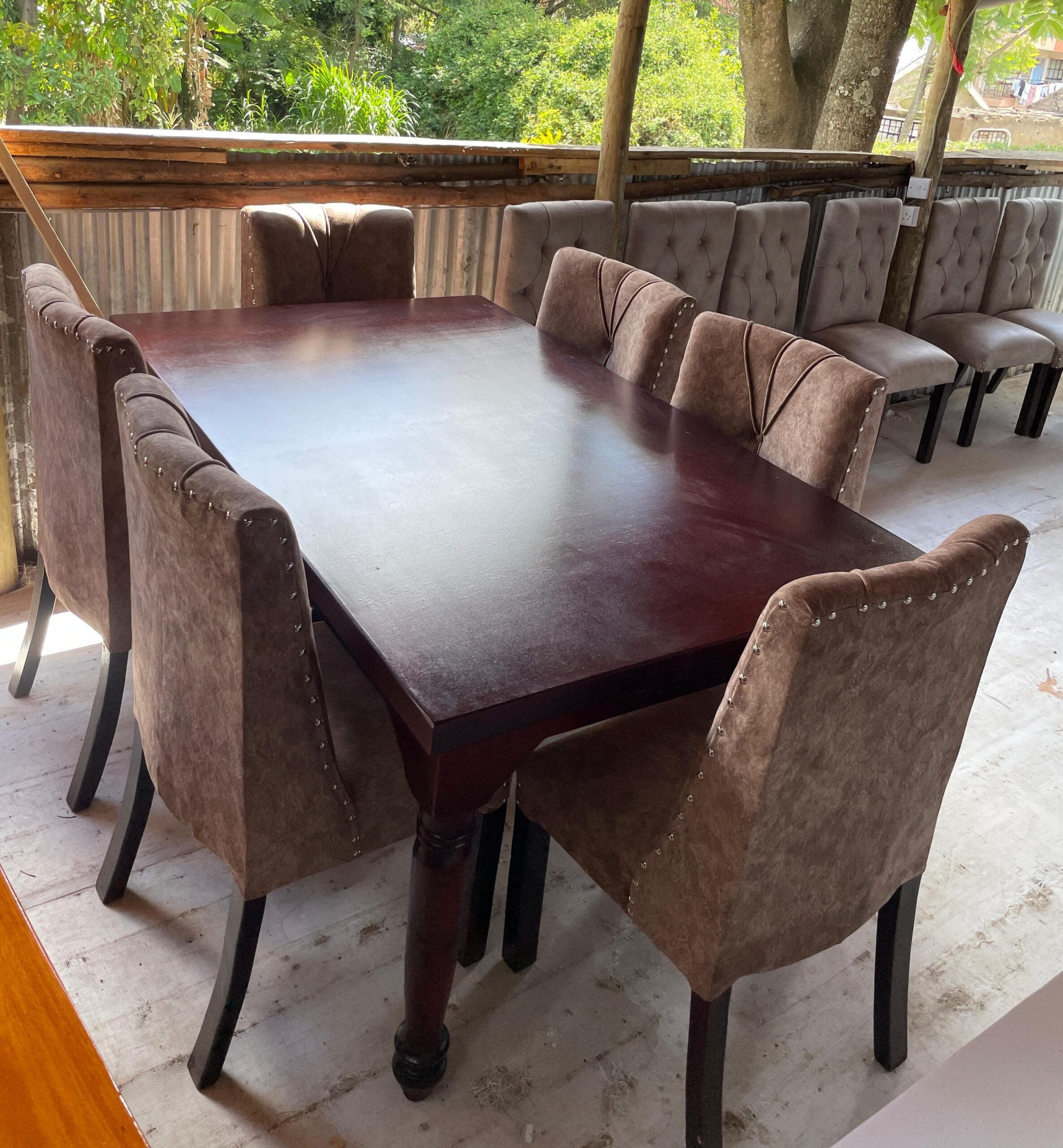 Hardwood Dining Table with Chestered seats. 4 Seater – KSh 45,000 | With Marble – KSh 55,000 6 Seater –