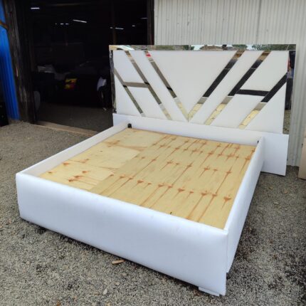 Extended Headboard Bed with Mirror Decor Elegant design, luxurious finish Available in all sizes: 4×6 – KSh 50,000 | 5×6