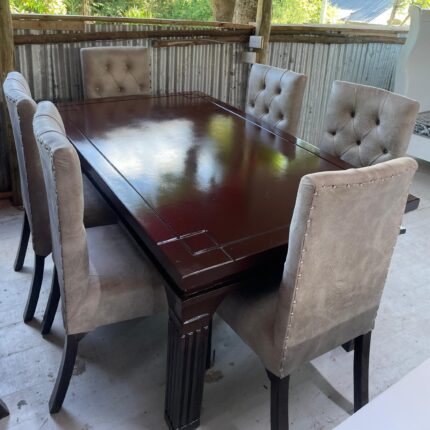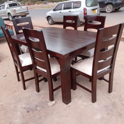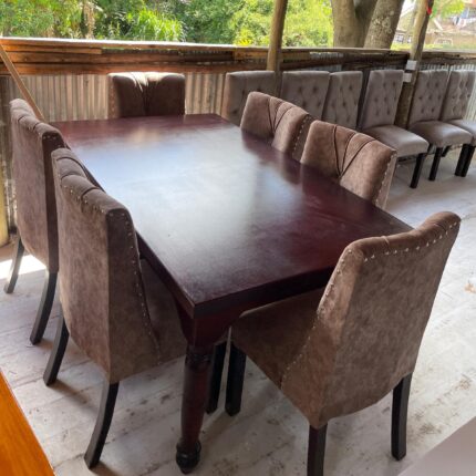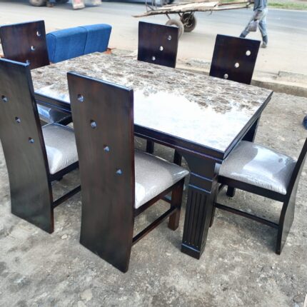 Hardwood Dining Table with Chestered seats. 4 Seater – KSh 45,000 | With Marble – KSh 55,000 6 Seater –