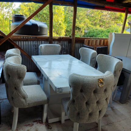 White Hardwood Dining Table with green Chestered seats. 4 Seater – KSh 45,000 | With Marble – KSh 55,000 6