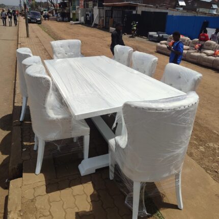 White Hardwood Dining Table 4 Seater – KSh 45,000 | With Marble – KSh 55,000 6 Seater – KSh 65,000